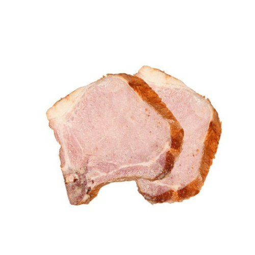 Smoked pork chops are obtained by subjecting pork ribs to a smoking process.